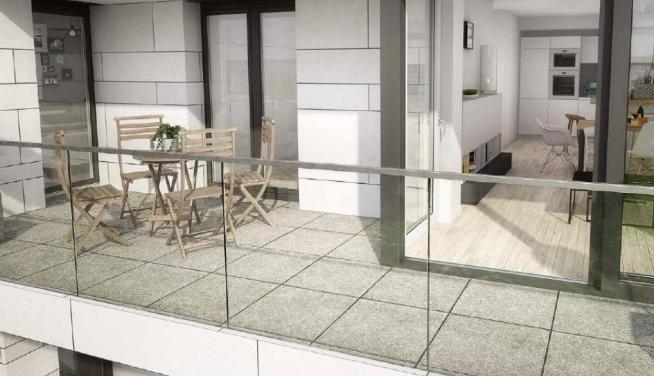 L'appartement possède un balcon spacieux. Les parkings et caves privés, les 3 buanderies et le local poubelles se répartissent sur deux sous-sols.
