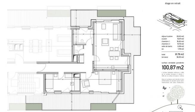 Availability : automne 2018 Bedroom(s) : 2 Lot : 203 Number of floor(s) : 2 Reference : SUM203 Stage : 2 Surface : 100.87 m² Bathroom(s) Cellar Central heating Condensing boiler Elevator Entrance hall Floor heating Gas heating Laundry room Living room Separated WC Triple glazing Vmc double flow Wall closets kitchen