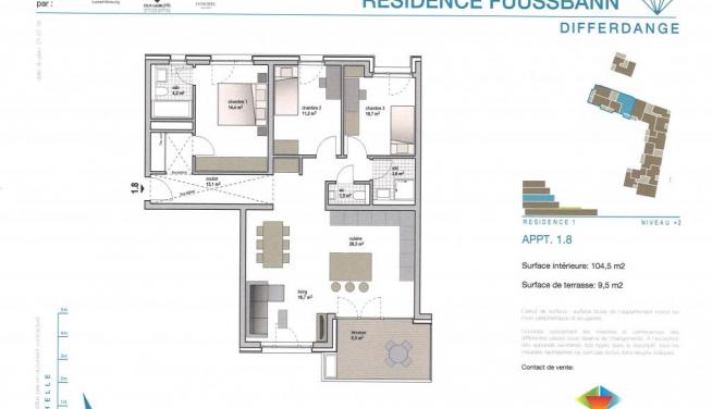 Lot 1.08 Nous vous présentons un très bel appartement à vendre dans la nouvelle résidence 'FUUSSBANN' en construction à Differdange à deux pas du centre ville. La résidence composée de 4 étages et de 2 sous-sols se situera dans un quartier calme et à la fois à proximité de toutes commodités de la vie urbaine.